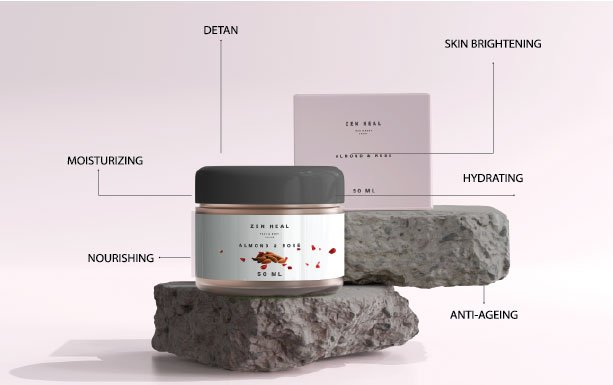 De-tanning: Both almond and rose have properties that can help to lighten and even out skin tone, making them effective in reducing the appearance of tan lines and sun damage.